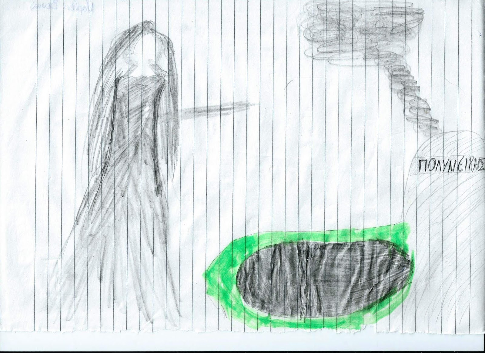Οι ζωγραφιές των παιδιών συγκεντρώθηκαν και χρησιμοποιήθηκαν για την δημιουργία μιας κατά κάποιο τρόπο μικρού μήκους ταινίας, αυτή που ακολουθεί. (Ευχαριστώ, gia des, για το ηχητικό μοντάζ του θέματος "Η θυσία της Αντιγόνης" που έγραψε ο Χατζιδάκις για μια παράστασης της "Αντιγόνης" του Ανουίγ)